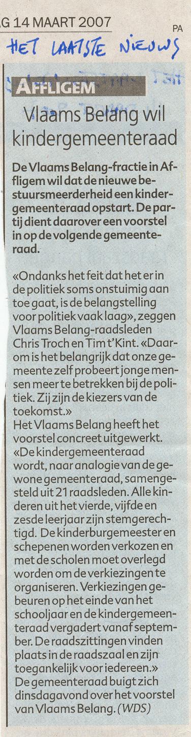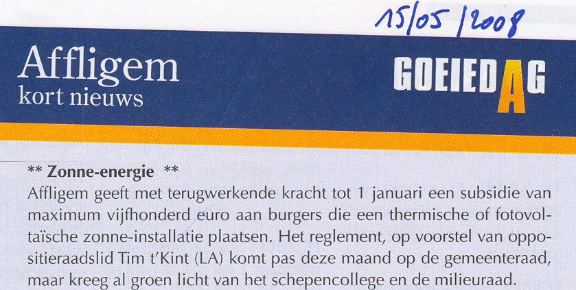 Naar aanleiding van een paar voordrachten die georganiseerd werden door CD&V Affligem, stelde ik op de gemeenteraad deze vraag :